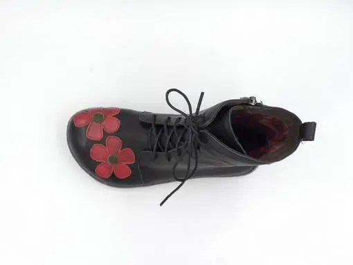 Yksityiskohdat: vetoketju sisäsyrjällä, nauhat edessä, kukkakoristelu