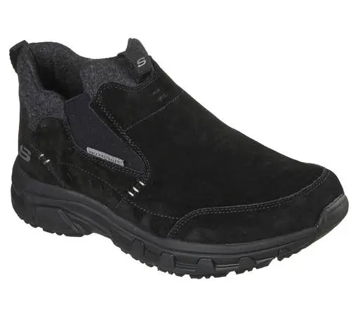 Todella kevyet ja mukavat mustat Skechers -kävelykengät, joissa Relaxed Fit Memory Foam -pohjallinen joka muotoutuu jalan mukaan.