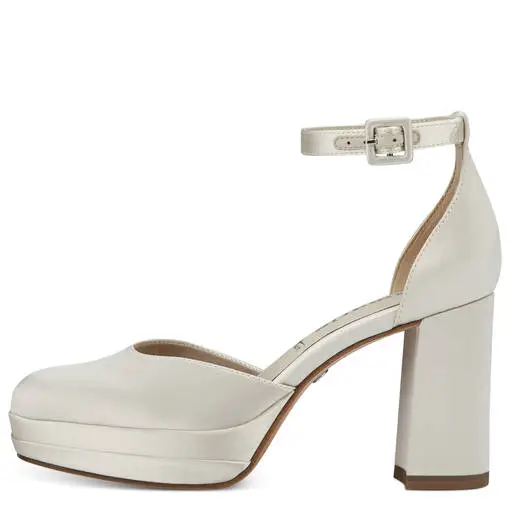 Trendikäs, tolppakorollinen, laadukas, kaunis ja hyvälestinen Tamaris korkokenkä nilkkaremmillä.