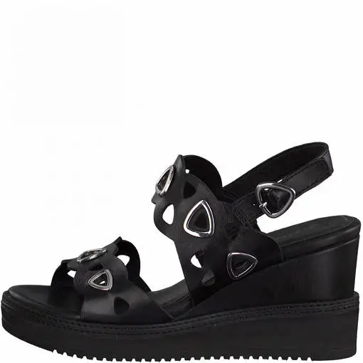 Tyylikäs ja näyttävä kiilakorko sandaali, nahkaa
