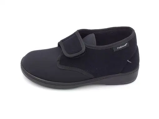 Soveltuu hyvin mm. hallux valgus/vaivaisenluu ongelmiin, turvonneille jaloille ja pyörätuoli käyttöön varren suojatessa nilkkaa. Omat pohjalliset sopivat myäs tähän malliin.