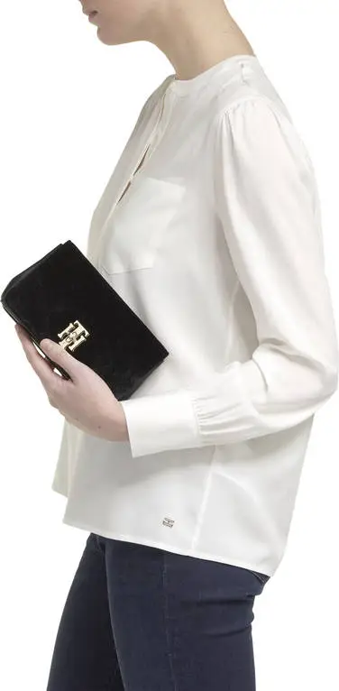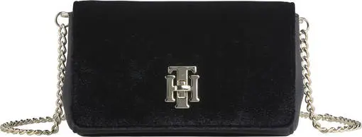 Todella tyylikäs Tommy Hilfiger musta XOVER -pikkulaukku sopii loistavasti juhlaan. Laukun sisällä avotasku ja korttitaskuja. Olkahihna on kultaista ketjua. Laukun voi sulkea tyylikäällä TH klipsillä. Laukun pinta on mustaa samettia.