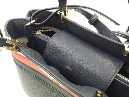 Laukun sisällä on iso avotasku jonka keskellä vetoketjullinen tasku. Laukku sulkeutuu magneetilla.