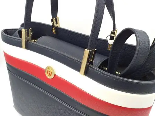Tommy Hilfiger tummansininen TH Core Satchel -laukku sopii niin töihin kun iltamenoihinkin. Päällä tyylikäs logo.