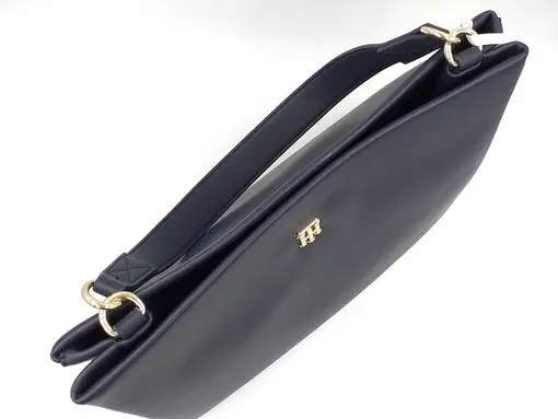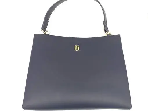 Tommy Hilfiger sininen Modern Satchel -laukku sopii niin töihin kun vapaa-aikaankin. Edessä tyylikäs uudistettu TH – logo. Laukun sisällä iso tasku, pieni vetoketjullinen tasku ja kaksi pientä avotaskua.