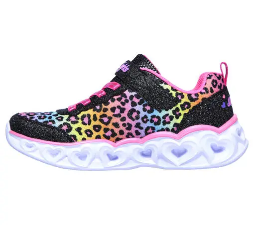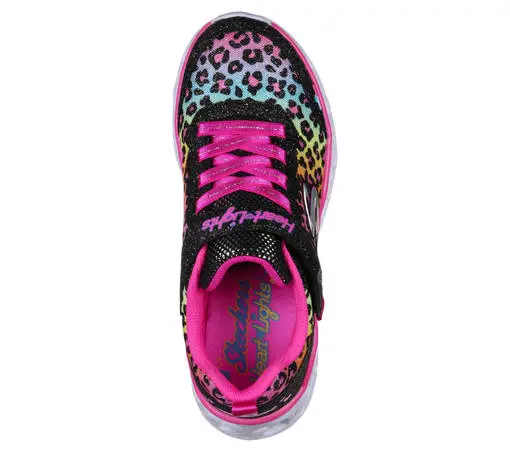 Todella kevyt, jalkaan sujautettava, rento ja sporttinen lenkkitossu Skechers S-Lights Heart Lights – Love Match vilkkuvilla valoilla ja korostusompeleilla.